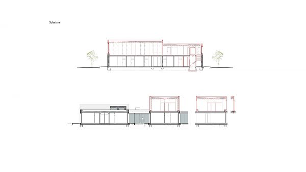 Der Veranstaltungsraum bietet 99 Personen Platz und öffnet sich Richtung Markplatz, während die Nebenräume zum öffentlichen Teich positioniert sind. Die Fassaden sind vertikal gegliedert und lockern die liegende Masse der Aufstockung auf. Durch den Hochpunkt des Veranstaltungsraumes und der bewusst gesetzten Fassadenöffnungen, wird eine Leichtigkeit erzeugt, die anspruchsvoll detailliert ist.