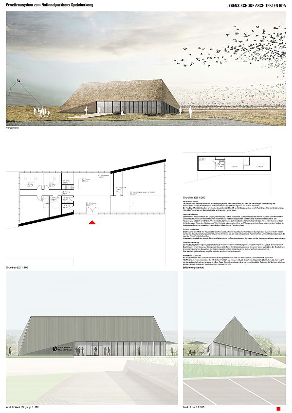 Der Neubau des Nationalparkhauses ist das Eingangsportal zum Speicherkoog. Es dient der nachhaltigen Inwertsetzung des Nationalparks und des Weltnaturerbes Wattenmeer sowie der Entwicklung eines naturnahen Tourismus.